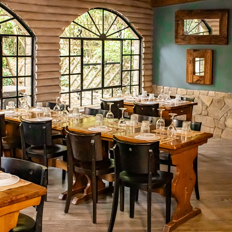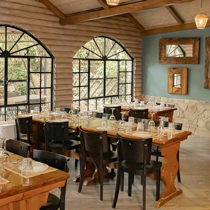 Κατασκευασμένος από ξύλο και πέτρα, με δύο τζάκια στο εσωτερικό του και με μοναδική θέα στο δάσος από τις δύο πλευρές του δίνει στον επισκέπτη την αίσθηση ότι ζει σε παραμύθι.