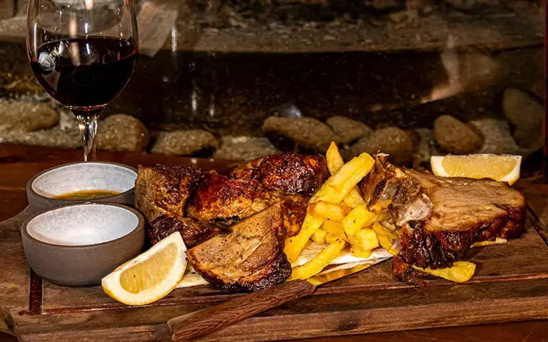 Το χειμώνα μπορεί – αν είστε τυχεροί – να απολαύσετε το φαγητό, τον καφέ ή το ποτό σας δίπλα στο τζάκι και συγχρόνως να θαυμάσετε από τις τζαμαρίες που το περικλείουν το κατάλευκο από το χιόνι τοπίο.