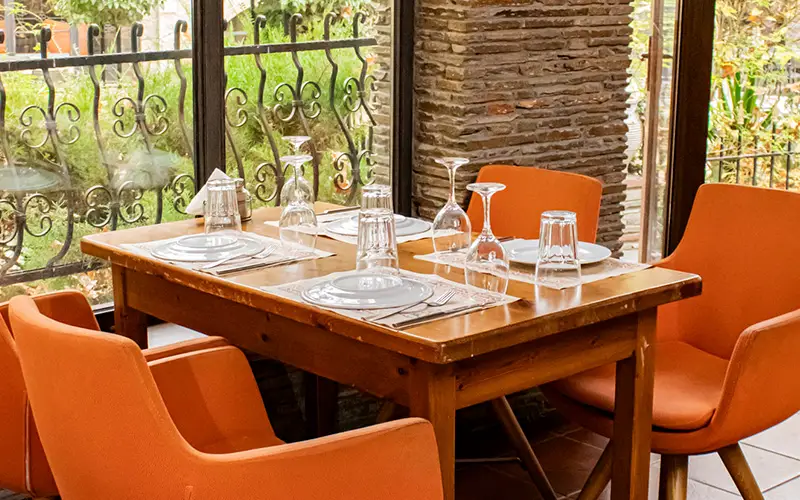 Το ξύλο και η πέτρα κυριαρχούν και σε αυτό το χώρο μας. Στην ουσία αποτελεί παράρτημα του εστιατορίου μικρότερης χωρητικότητας με τις ίδιες όμως παροχές.